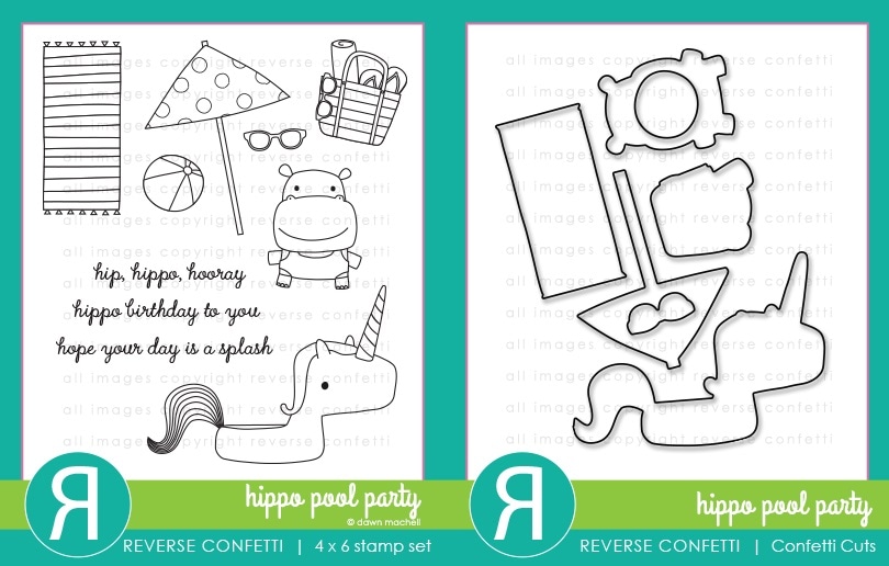 Reverse Confetti ダイ & スタンプ セット♪ - Hippo Pool Party