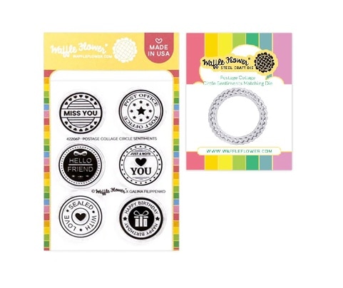 Waffle Flower スタンプ&ダイセット♪ - Postage Collage Circle Sentiments